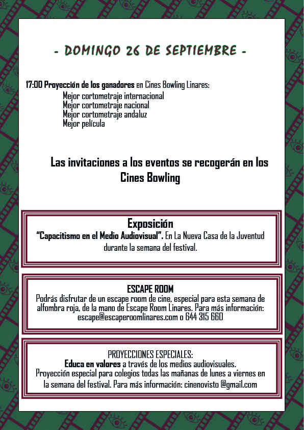 En conclusión, Cine no visto, es una ventana para aquellas obras independientes que quieren dejar su huella en el espectador. ¡¡Ve a hacer una visita a esta fantástica ciudad de Linares, y participa en el festival!!