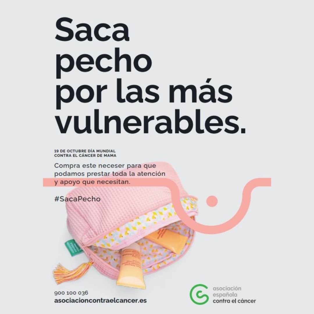 Con motivo de la campaña “Saca pecho”, la Asociación, a través de su tienda online, pone a la venta artículos solidarios cuya recaudación va destinada a los programas de atención psicológica y social para pacientes y sus familias; y a fomentar la investigación en cáncer de mama.