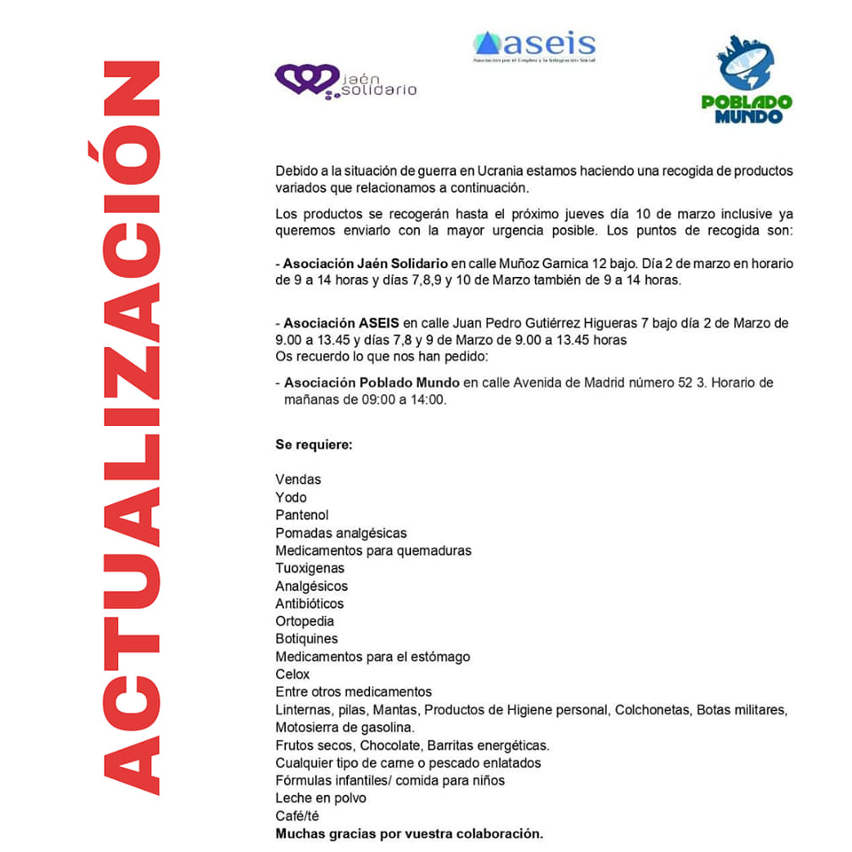 La provincia de Jaén se ha movilizado para ayudar a Ucrania