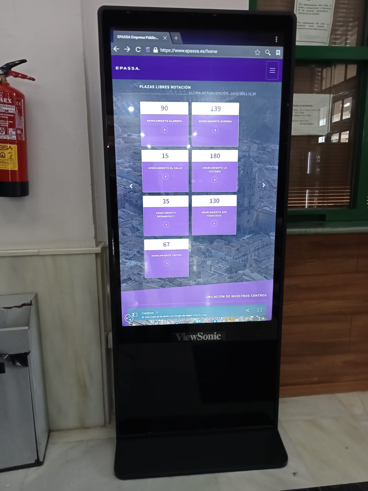 - Los aparcamientos públicos de la ciudad y el número de plazas libres del que disponen en el momento.