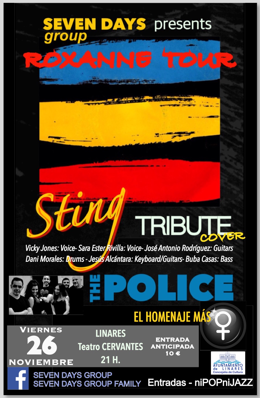 Este gran show se podrá disfrutar en el Teatro Cervantes de Linares el viernes 26 de noviembre a las 21 h. Las entradas anticipadas ya están a la venta entre 5 - 10€ online y en puntos de venta física como en el Bar Elviris, en Linares o la tienda Musical sita en la calle Don Luis, número 8.