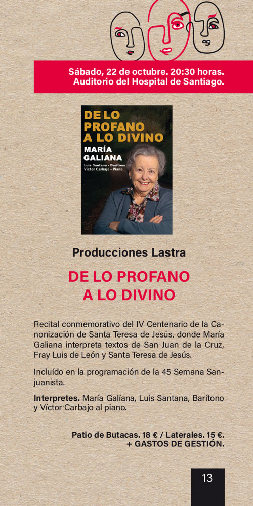 - 20:30 en Teatro Ideal Cinema Zona A. 12 € / Zona B. 10 € / Zona C. 8 € + GASTOS DE GESTIÓN