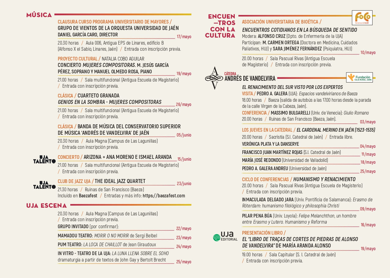 ¡Buenas noticias! Ya tenemos la programación cultural de la Universidad de Jaén para los meses de mayo y junio, y ¡viene cargada de actividades increíbles!