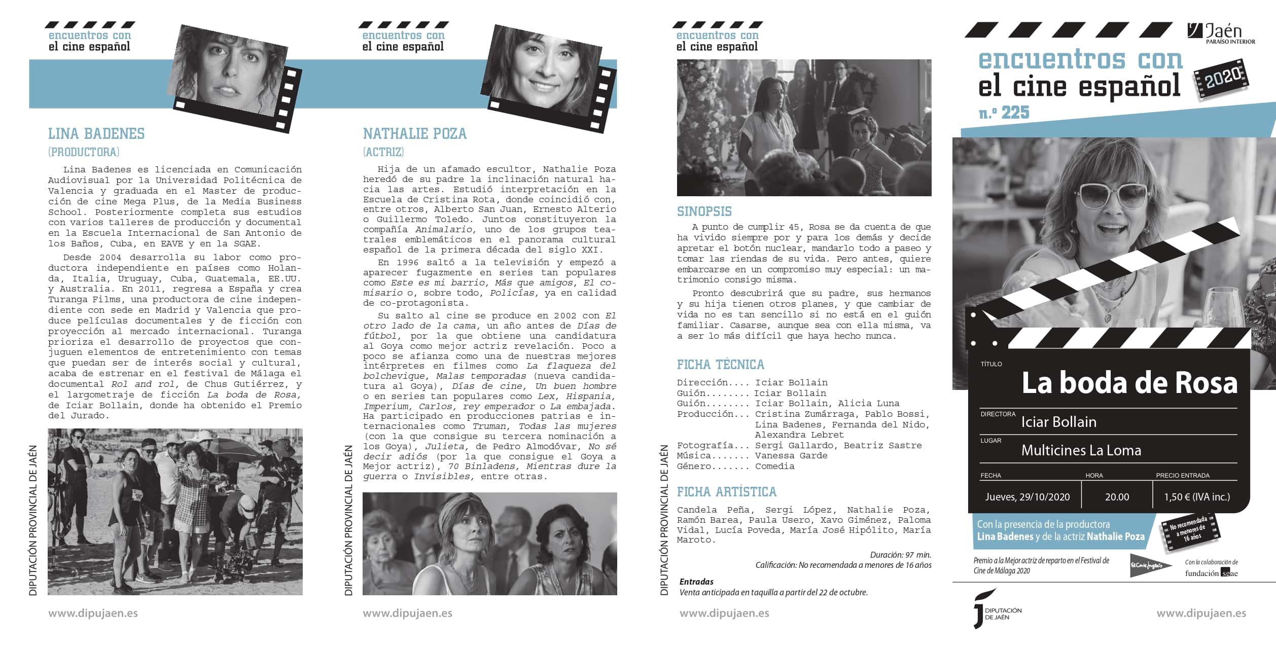 El jueves, 29 de octubre podremos disfrutar de la proyección de "La Boda de Rosa" de la cineasta Iciar Bollaín. Además, después tendremos la oportunidad de hablar sobre la película con la misma directora, con la productora Lina Badenes y con la actriz Nathalie Poza (Premio a la Mejor actriz de reparto en el Festival de Cine de Málaga 2020).