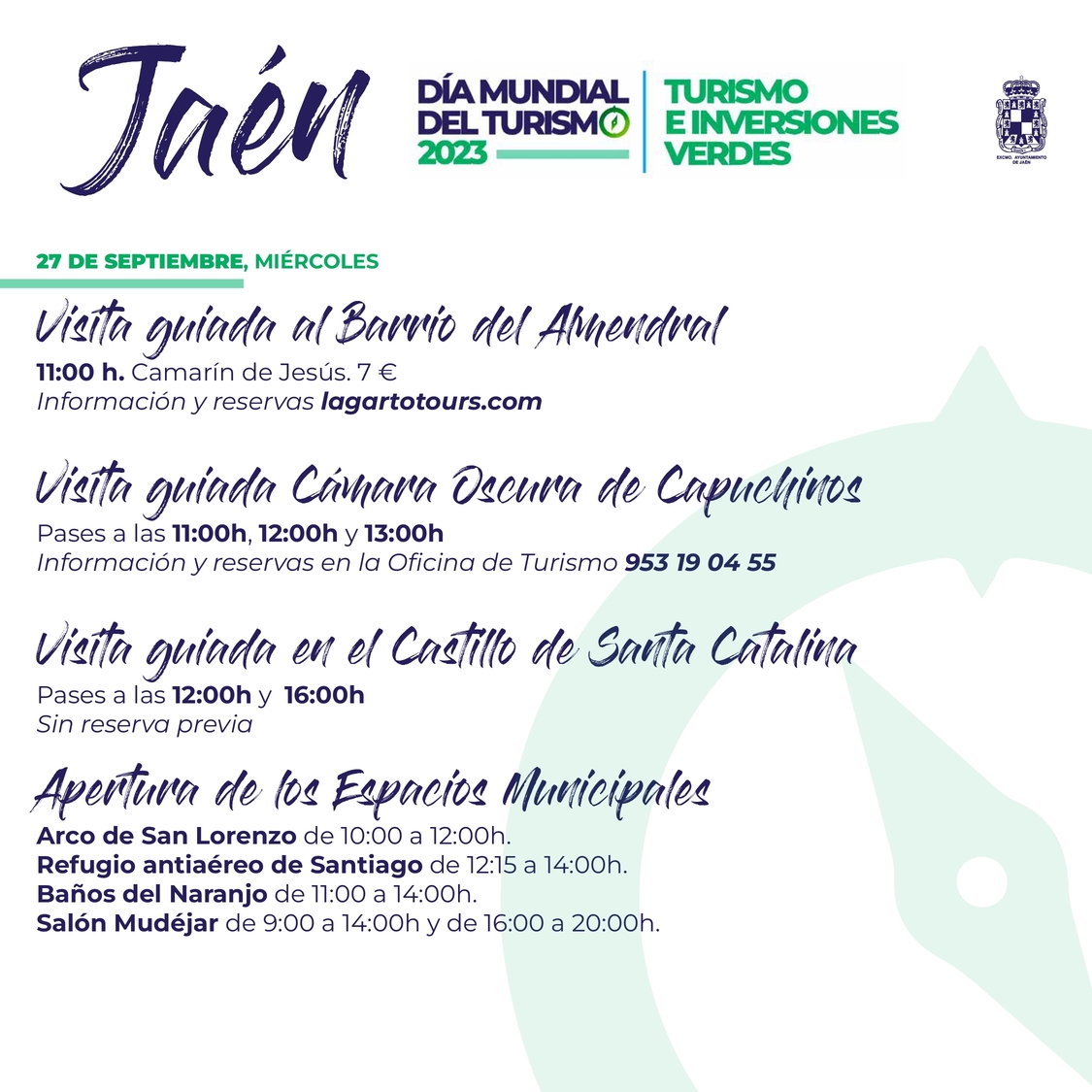 Puedes consultar la programación completa en el siguiente pdf: Programación Día Mundial del Turismo 2023 Jaén