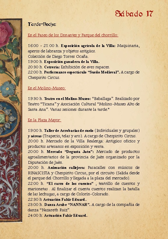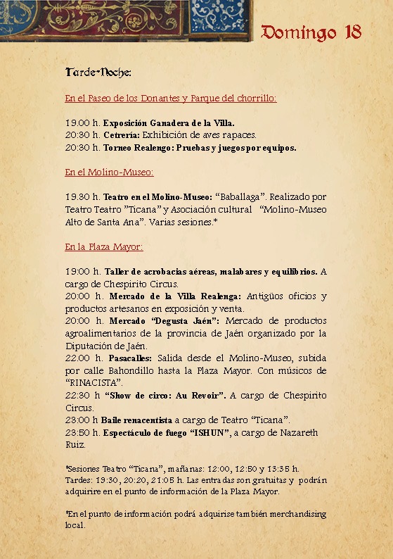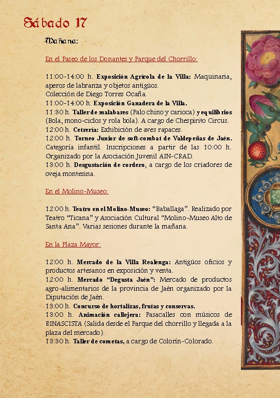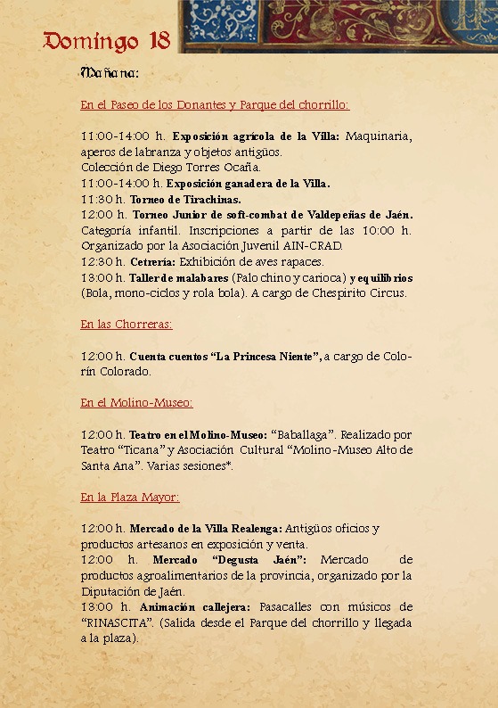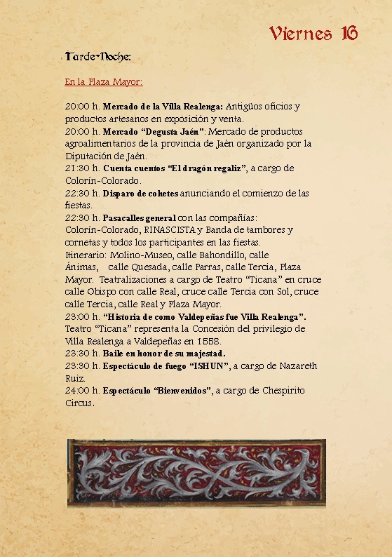 Puedes consultar el programa completo en el siguiente enlace: Programa Fiestas Realengas Valdepeñas de Jaén 2019