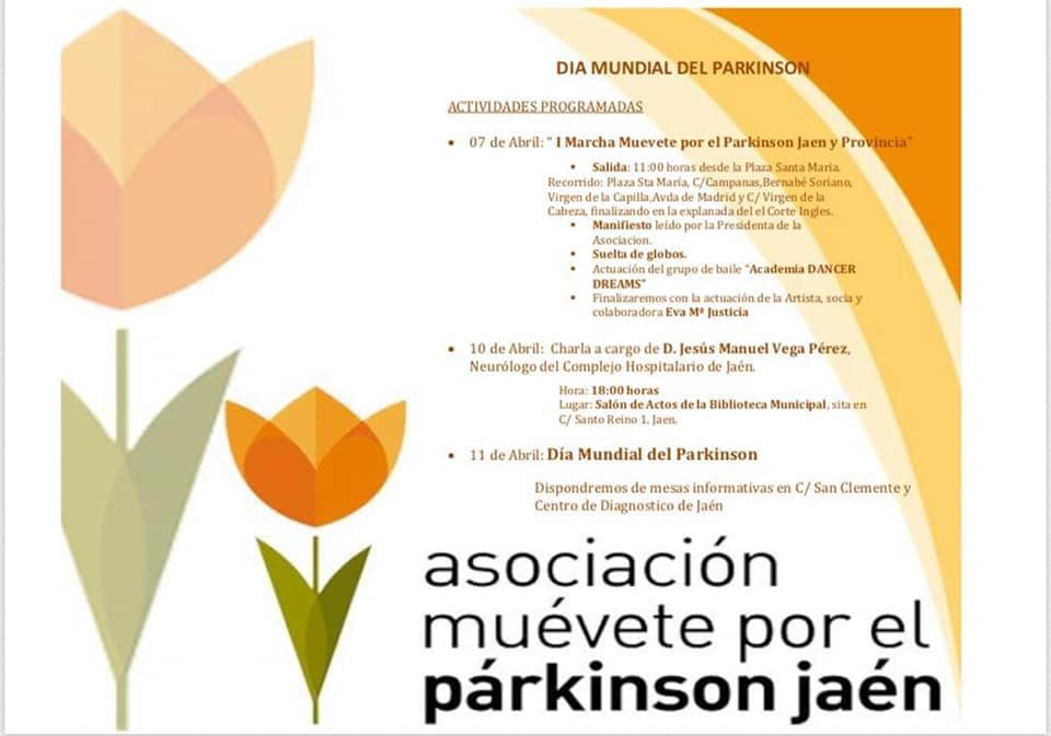 El 7 de abril se celebra en Jaén la I Marcha Solidaria "Muévete por el Párkinson" una actividad en la que los jiennenses podremos unirnos y apoyar a la Asociación muévete por el párkinson Jaén, a la vez que disfrutamos de actuaciones de danza y música.