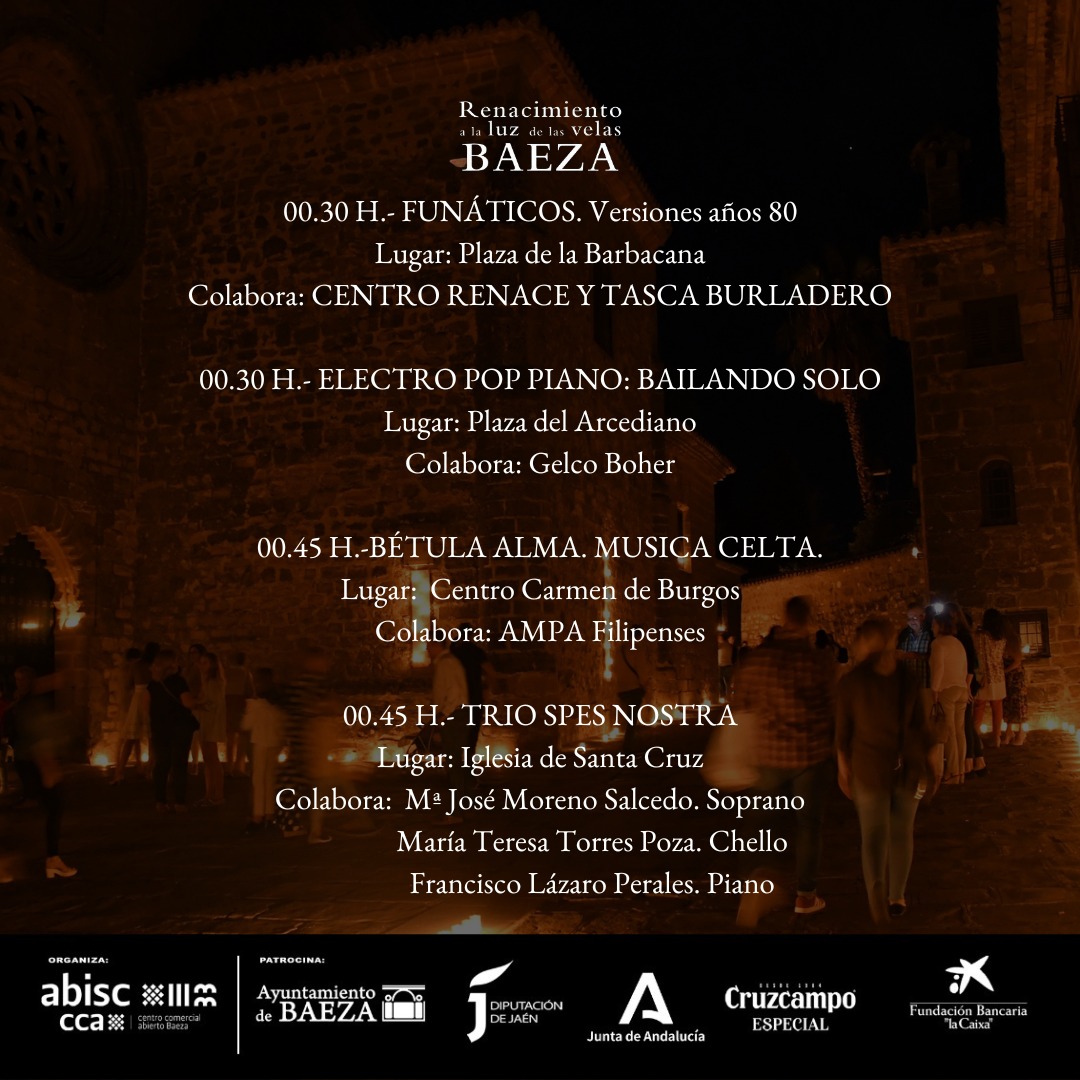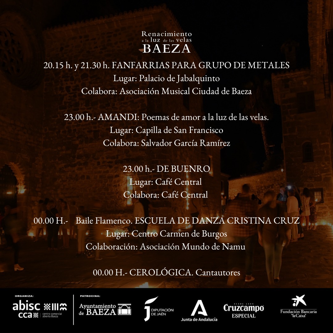 Un evento único organizado por la Asociación Baezana de Industrias, Comercios y Servicos, ABISC, con el apoyo del Excmo, Ayuntamiento de Baeza, la Diputación Provincial de Jaén, la Junta de Andalucía y la colaboración de patrocinadores como Cruzcampo y la Obra Social La Caixa. La primera y segunda edición tuvieron lugar en 2018 y 2019, en las que miles de personas visitaron Baeza, y por la pandemia en el año 2020 no se pudo realizar este mágico evento que se vuelto a recuperar en la tercera edición celebrada el pasado 11 de septiembre del 2021, desarrollándose con todas las medidas por contención por Covid previstas en ese momento: en el 2022, como es tradición, está previsto que se desarrolle el segundo sábado de septiembre, la noche del 10 de septiembre del 2022.