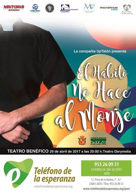 Teatro benéfico en beneficio de el Teléfono de la Esperanza (953 26 09 31), este es una ONG solidaria que tiene como misión mejorar de la salud emocional de las personas, poniendo al alcance de los ciudadanos un servicio cualificado y gratuito que les ayude a superar sus problemas.