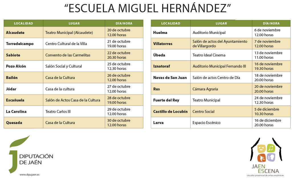 Esta representación entra dentro del programa del Circuito Provincial de Artes Escénicas "Jaén Escena", y es una más de las muchas actividades que se están realizando este año en honor a la obra de Miguel Hernández.