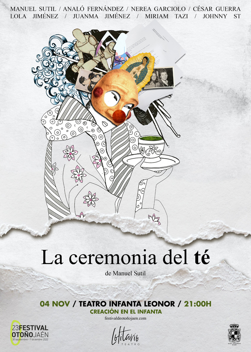 La ceremonia del té, es la representación del duelo por el que Manuel transita tras la pérdida de un ser querido. Este proceso, repleto de imágenes, sentimientos y locura, no es fácil de contar. Por esta razón, el autor se apoyará en el hecho teatral para narrar qué ocurriría si su madre, enferma de cáncer y convertida en un títere al que sostienen para dar vida, muriera. El autor pretende conquistar para ella, la inmortalidad, valiéndose del arte.