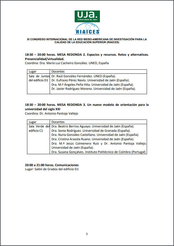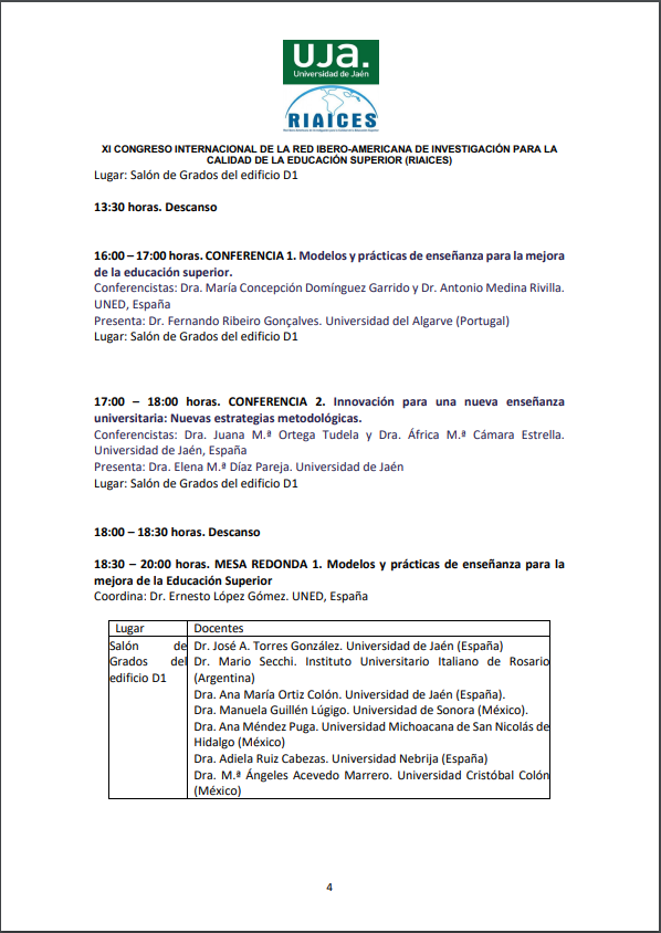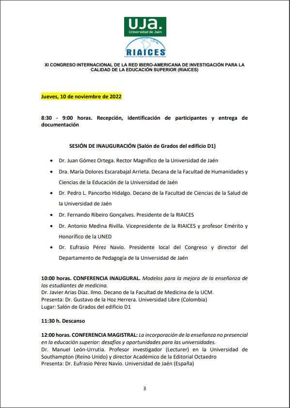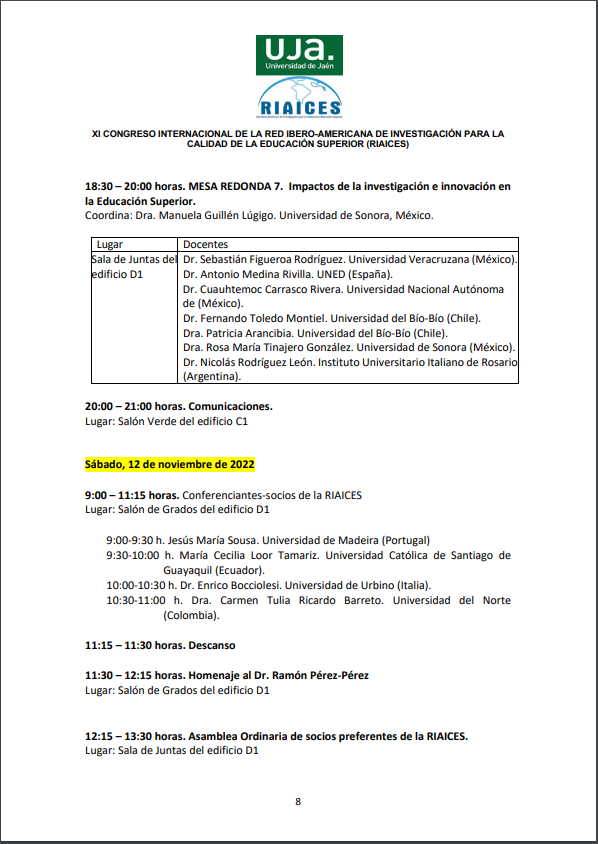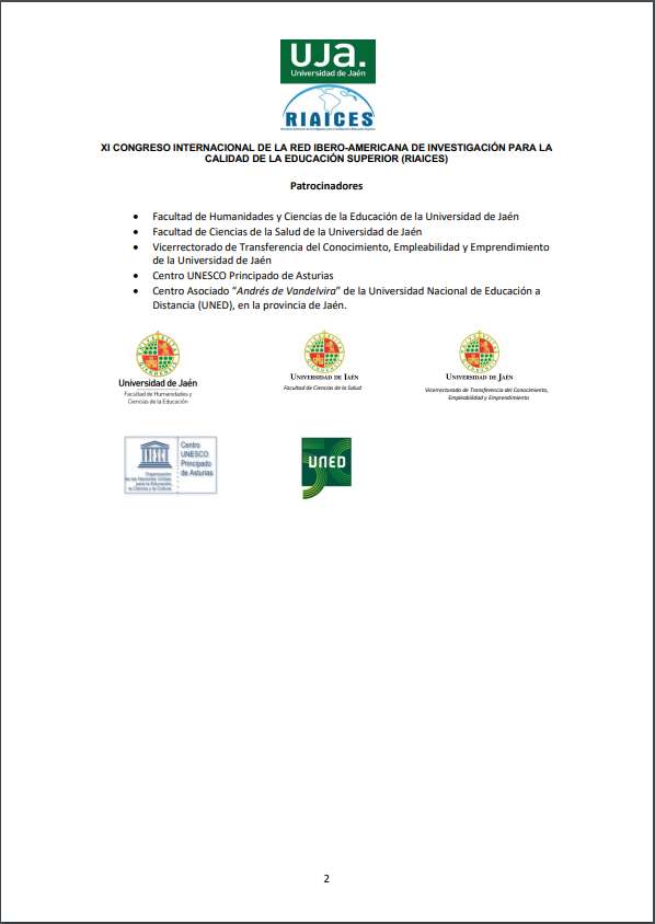 El XI Congreso Internacional RIAICES (Red Ibero-Americana de Investigación para la Calidad de la Educación Superior) tendrá lugar los próximos días 10, 11 y 12 de Noviembre, en la Universidad de Jaén, en el cual se debatirá sobre la Educación Superior en contexto post-Covid.