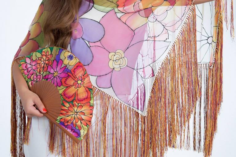 En Pepitina Ruiz Seda hacemos arte en seda y productos pintados a mano sobre seda natural de la más alta calidad, nuestras piezas son únicas. Realizamos pañuelos, fulares, pareos, bufandas, pashminas, mantones, ponchos, corbatas, tocados, bolsos, zapatos y vestidos. ¿Te gusta ser única y exclusiva? Personalizamos las piezas a tu gusto.